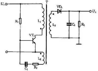 在電路中還設有鉗位線圈與二極管VD2,它可以將開關管VT1的最高電壓限制在兩倍電源電壓之間。為滿足磁芯復位條件,即磁通建立和復位時間應相等,所以電路中脈沖的占空比不能大于50%。由于這種電路在開關管VT1導通時,通過變壓器向負載傳送能量,所以輸出功率范圍大,可輸出50~200W的功率。電路使用的變壓器結構復雜,體積也較大,正因為這個原因,這種電路的實際應用較少。自激式開關穩壓電源的典型電路如下圖所示。這是一種利用間歇振蕩電路組成的開關電源,也是目前廣泛使用的基本電源之一。