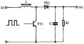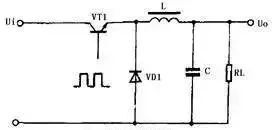 這種電路的優點是兩個開關管容易驅動,主要缺點是開關管的耐壓要達到兩倍電路峰值電壓。電路的輸出功率較大,一般在100~500W范圍內。降壓式開關電源的典型電路如下圖所示。當開關管VT1導通時,二極管VD1截止,輸人的整流電壓經VT1和L向C充電,這一電流使電感L中的儲能增加。當開關管VT1截止時,電感L感應出左負右正的電壓,經負載RL和續流二極管VD1釋放電感L中存儲的能量,維持輸出直流電壓不變。電路輸出直流電壓的高低由加在VT1基極上的脈沖寬度確定。